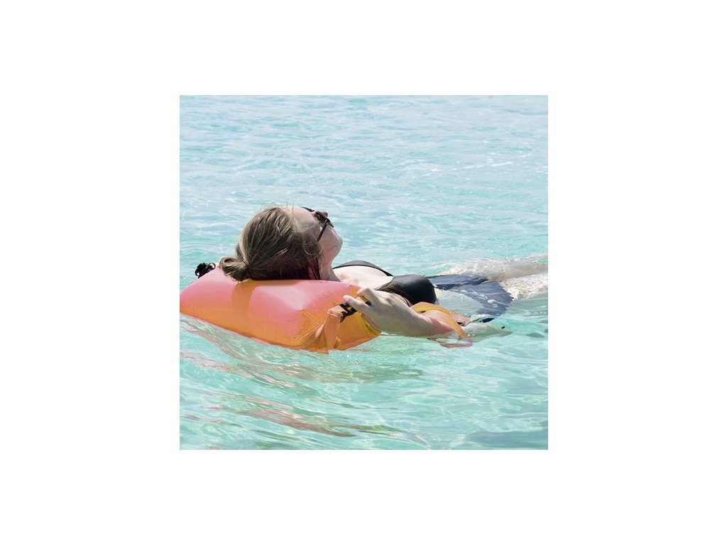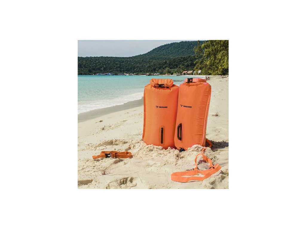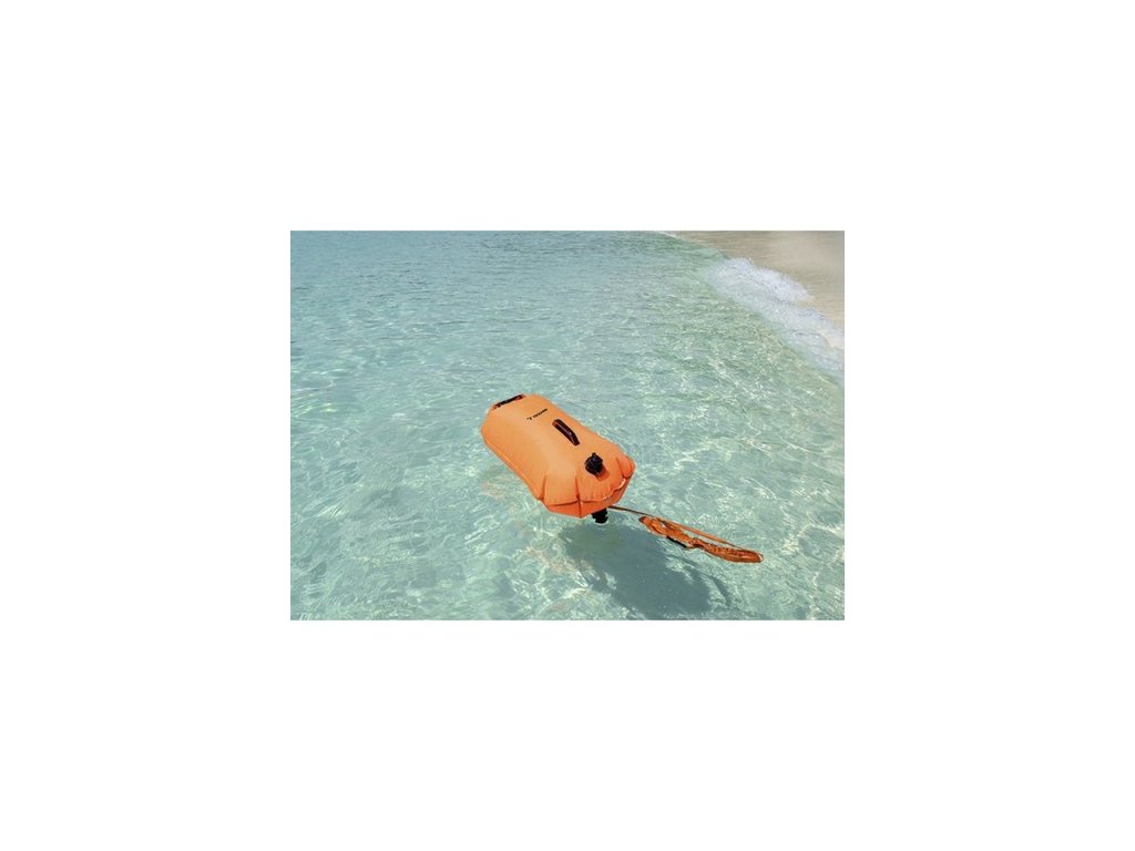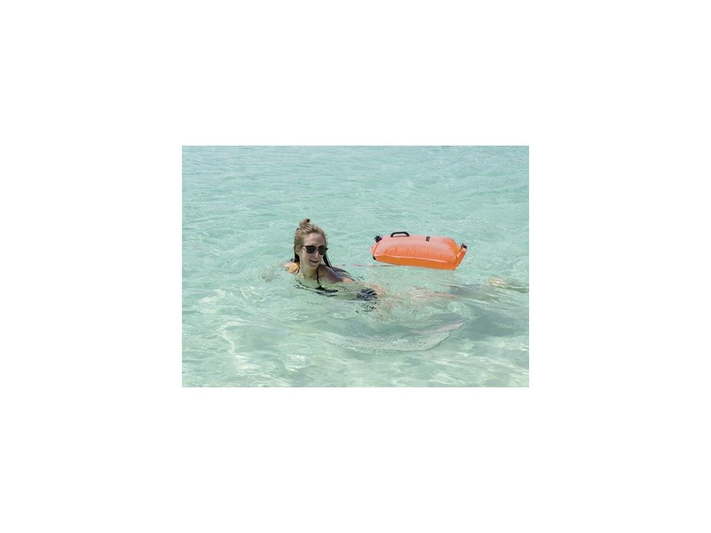 Kombinuje funkce bezpečnostní bójky a voděodolné kapsy pro uložení cenných předmětů