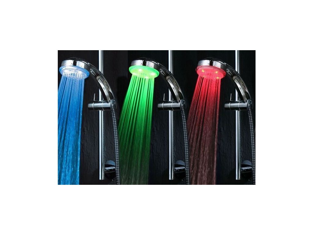 Sprchová hlavice s LED podsvícením vodního proudu je originálním koupelnovým doplňkem.