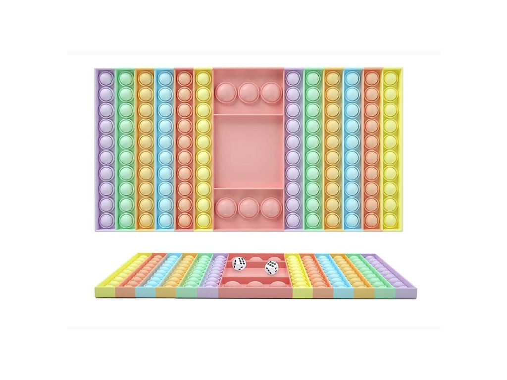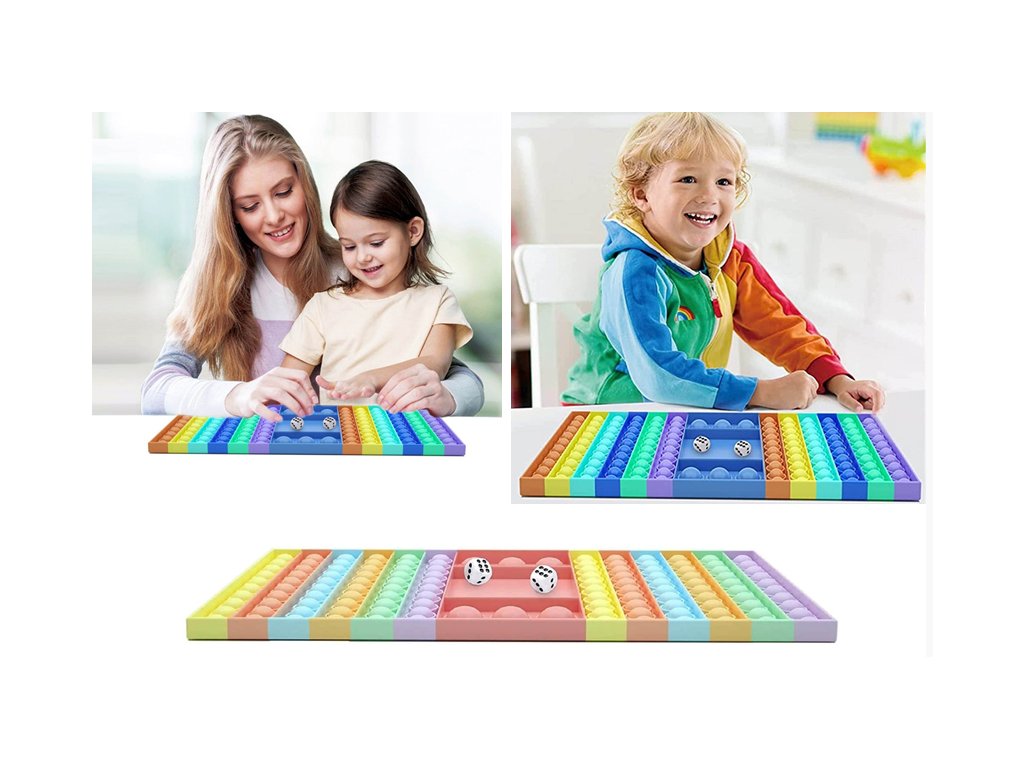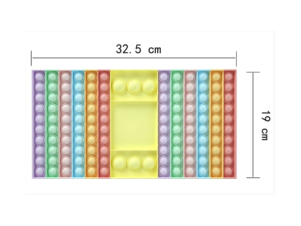 Revoluční antistresová hračka, založená na principu mačkání (praskání) silikonových bublin. Pestrobarevné, duhové provedení, ve tvaru obdélníku. Chytili jste někdy své děti, nebo možná i sebe a praskli bublinkovou fólii přímo z krabice balíčku? Pak si zamilujete tuto bublinovou společenskou hru. Stisknutí bublin způsobí jemné praskání, podobně jako v případě klepnutí na bublinkovou fólii.