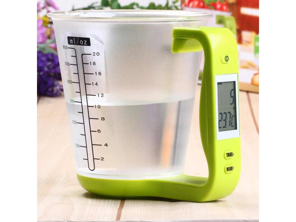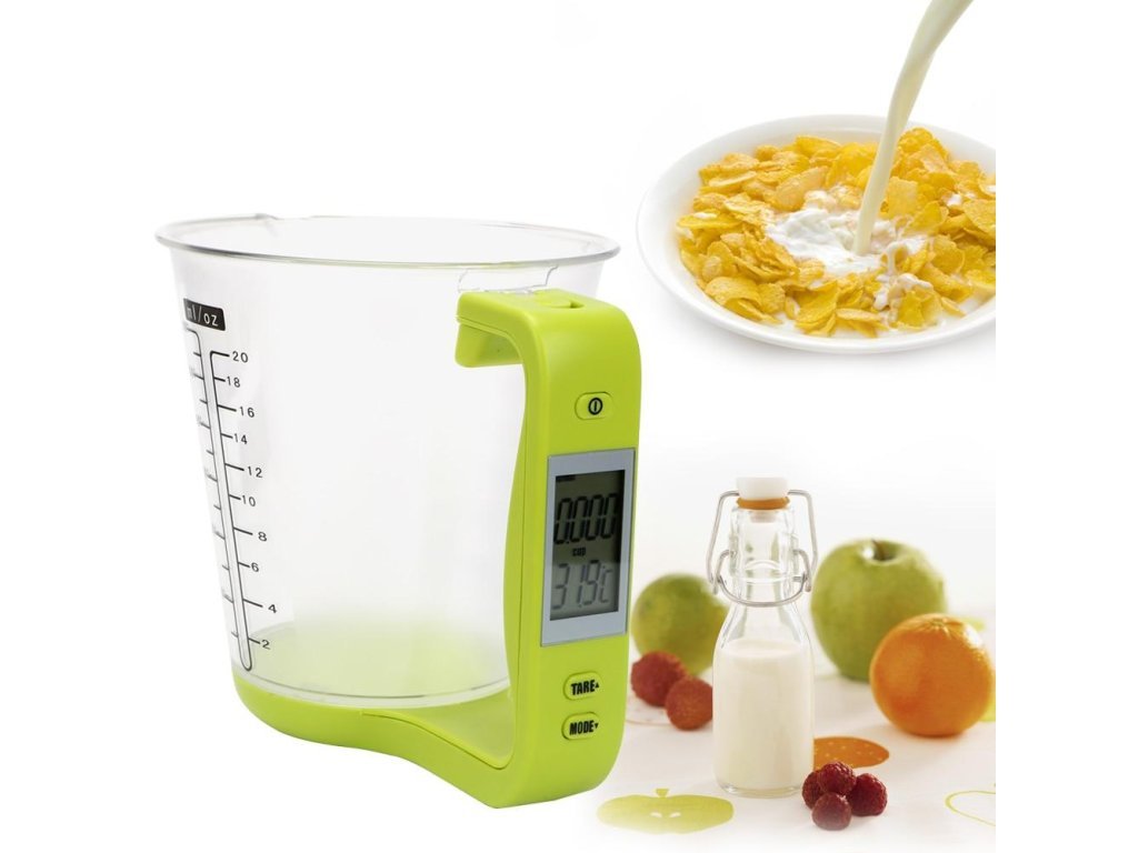Tato digitální odměrka měří všechny druhy tekutin a dalších ingrediencí pro vaše potřeby vaření.