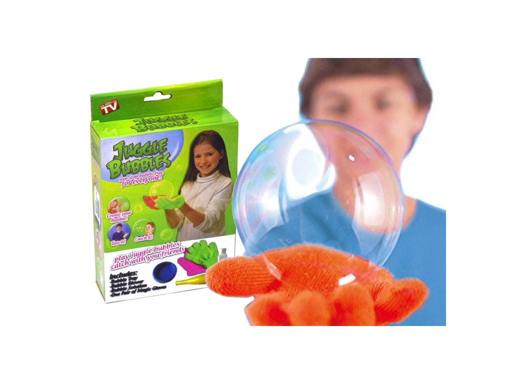 Nyní je tu ale sada Juggle Bubble, díky které s nimi můžete dělat doslova psí kusy. Díky speciálnímu foukátku se nikdy nestane, že by se vám bublina nepovedla a nasadíte-li si speciální přiložené rukavice, budete si připadat jako v pohádce. Bubliny nejen že neprasknou jako bubliny se standartního bublifuku, ale lze si s nimi pinkat a přenášet je !