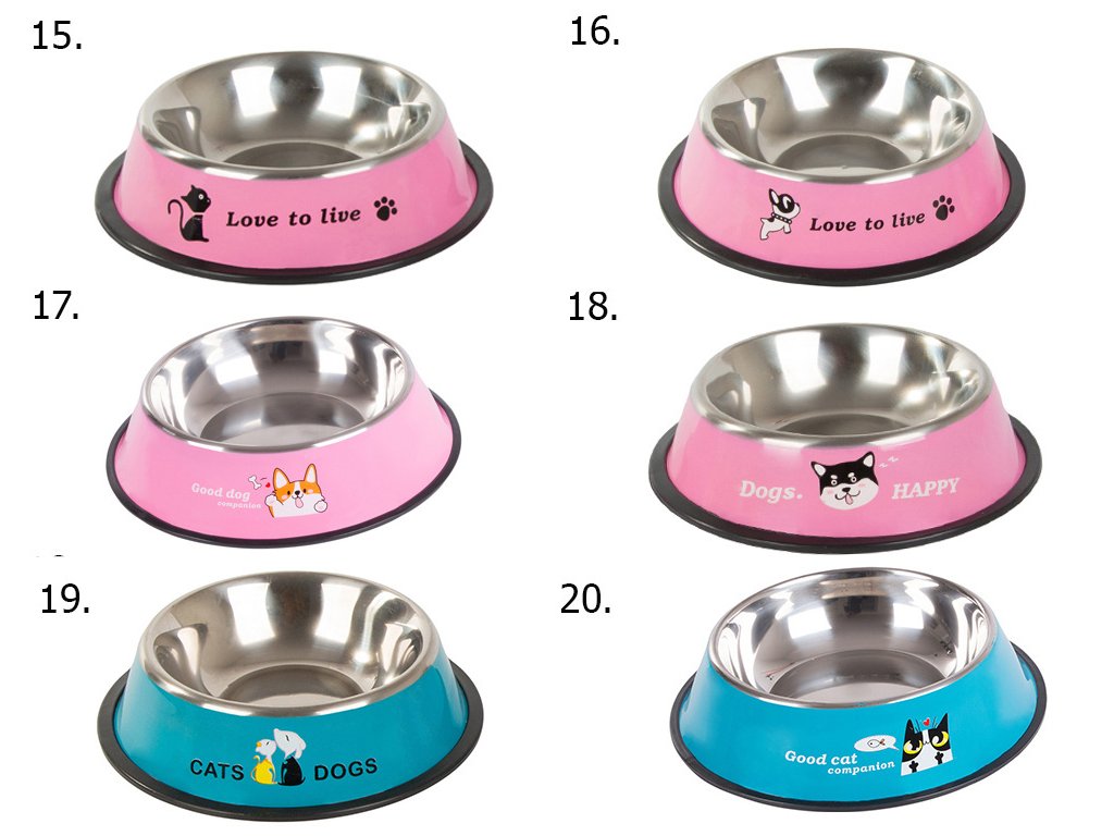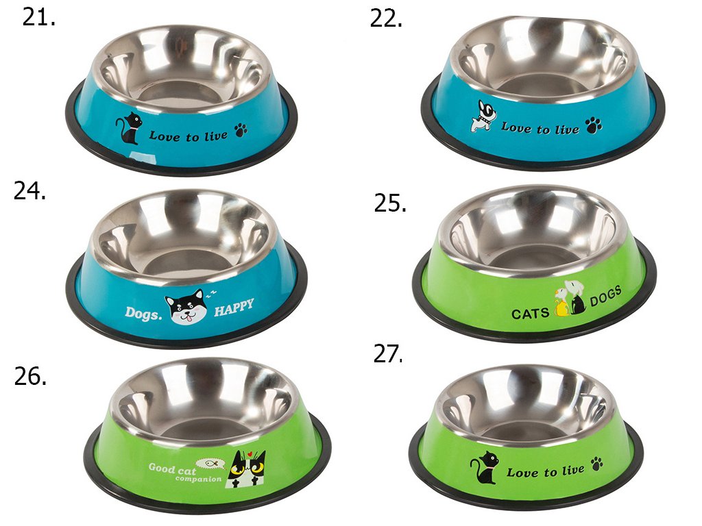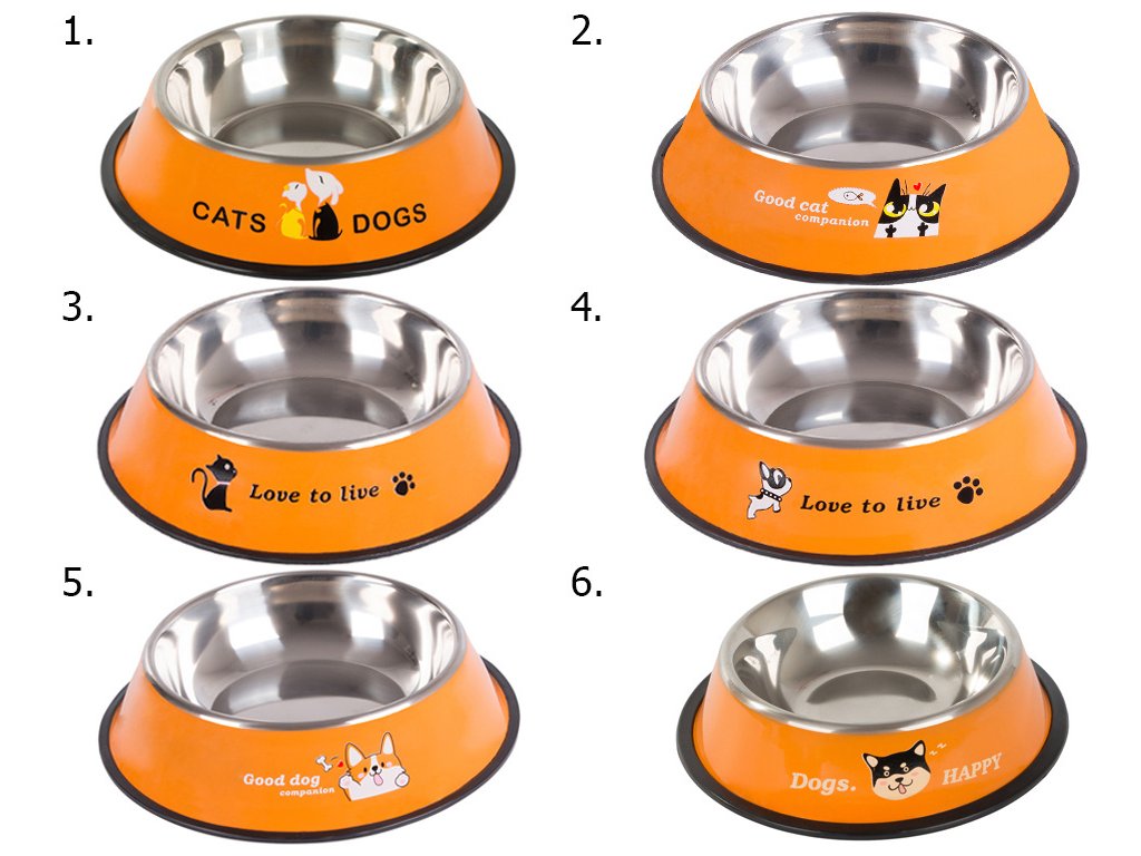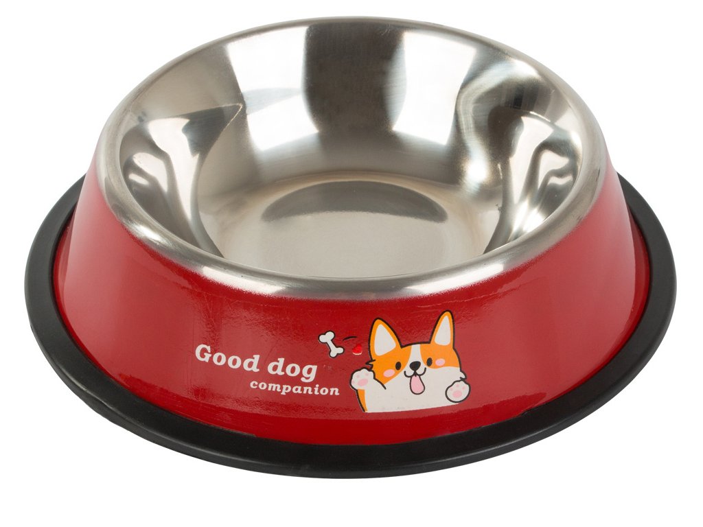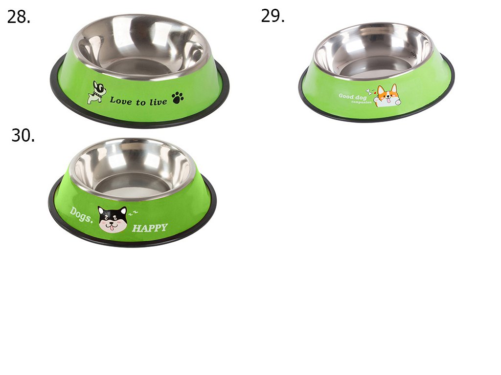 Praktická kovová miska na vodu nebo krmení s protiskluzovým povrchem.
