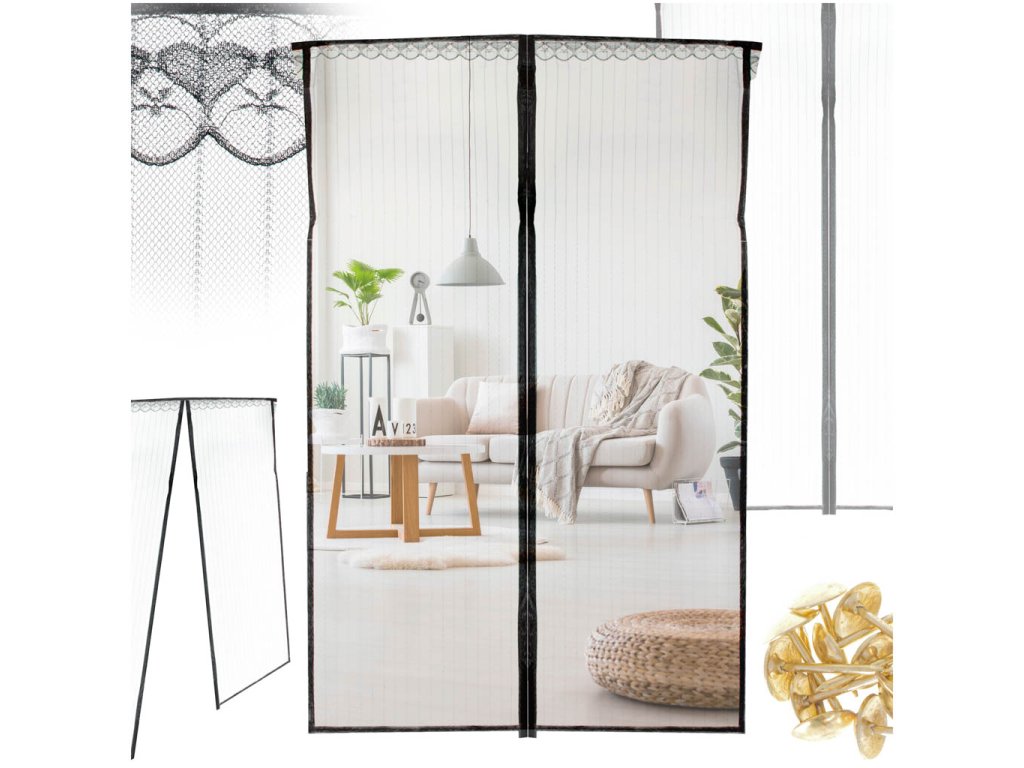 Praktická magnetická moskytiéra na dveře. Chrání váš domov před všemi druhy hmyzu. Velmi snadná montáž, stačí nasadit na kolíky. Barva: černá. Moskytiéra a kolíky jsou součástí balení. Rozměry moskytiéry: 100 cm x210 cm.