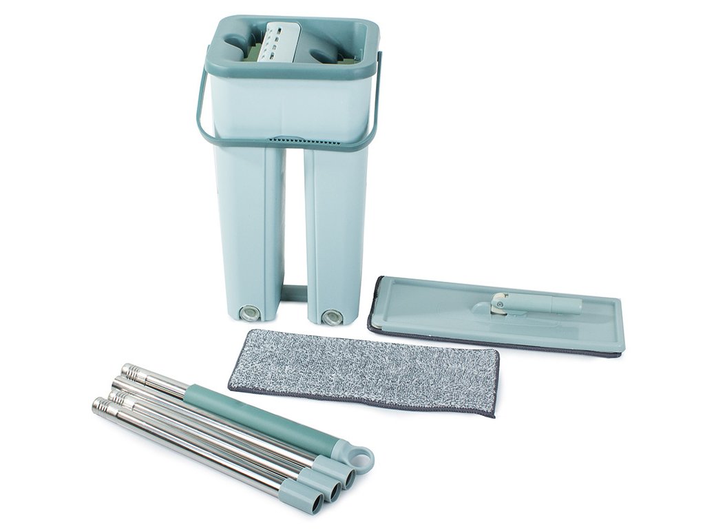 Plochý mop s kbelíkem s dvoukomorovou ždímačkou