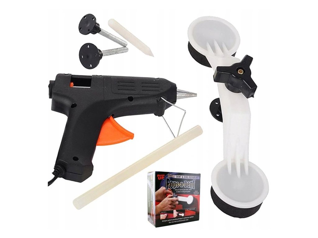 S Pops-a-Dent, každý může za pár minut odstranit zmačkaný plech a mít jej vyrovnaný, Odstraňte si lehké i ve větším rozsahu pomačkaný plech bez poškození laku. Možno použít k opravě automobilu, motocyklu nebo jakéhokoliv oplechovaného zařízení.