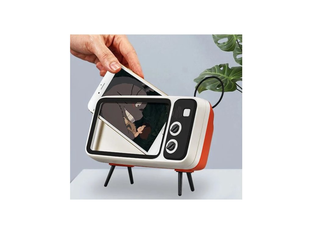 Užitečný a moderní vynález ve vzhledu retro televize umožňuje handsfree používání mobilního telefonu díky jeho umístění do praktického držáku. Zabere minimum místa a zajišťuje dokonalou stabilitu a bezpečnost mobilního zařízení. Svým designem obohatí každé zákoutí, tvarem napodobuje dekorativní rámeček.