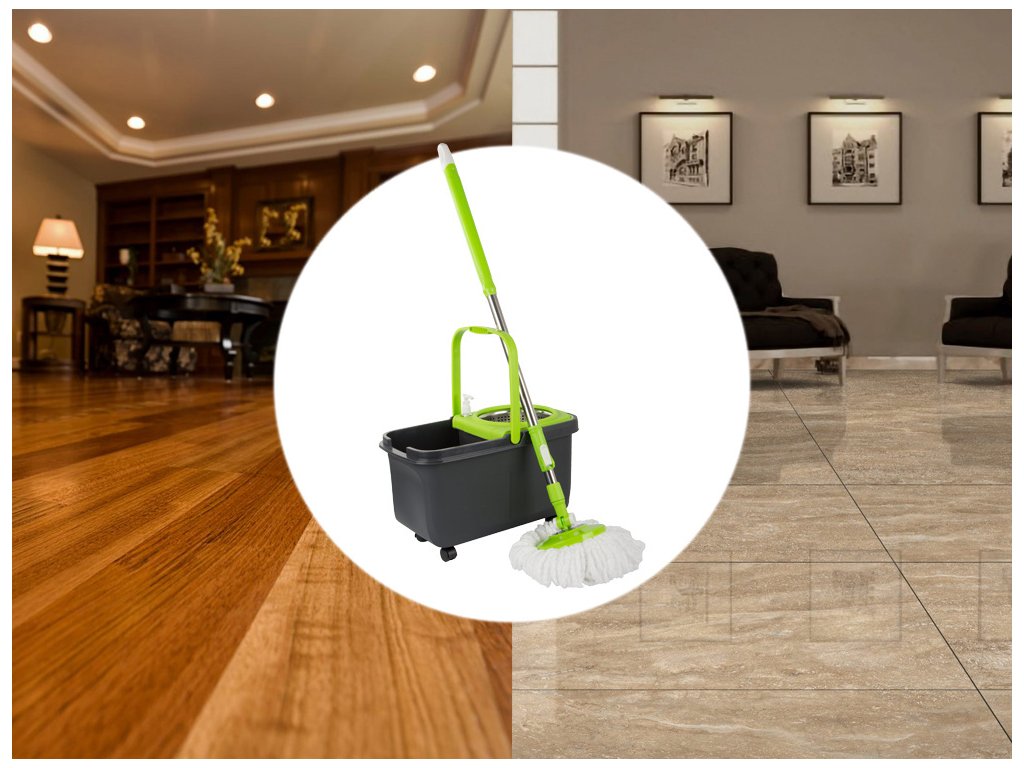 Rotační mop rotační 360 dávkovací kbelík sada 2x podložky z mikrovlákna