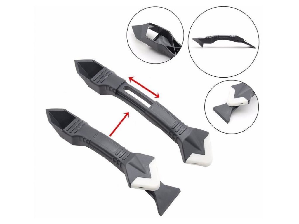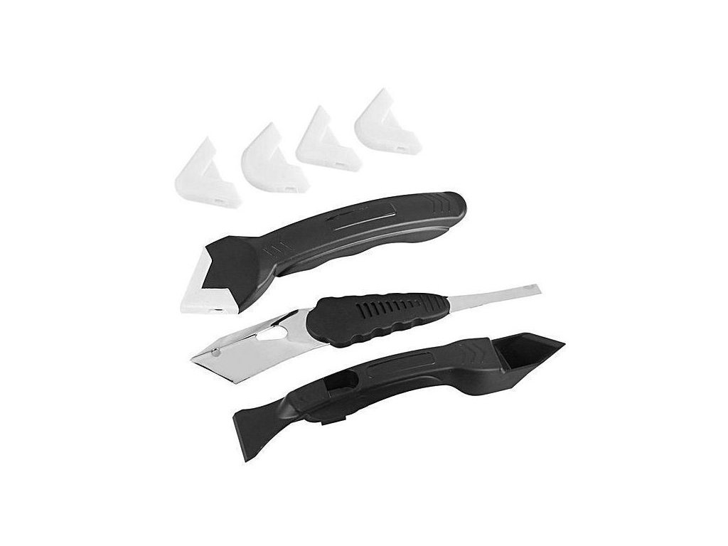 - Stěrka, nože a 5 ks koncovek pro vyrovnávání silikonové spáry