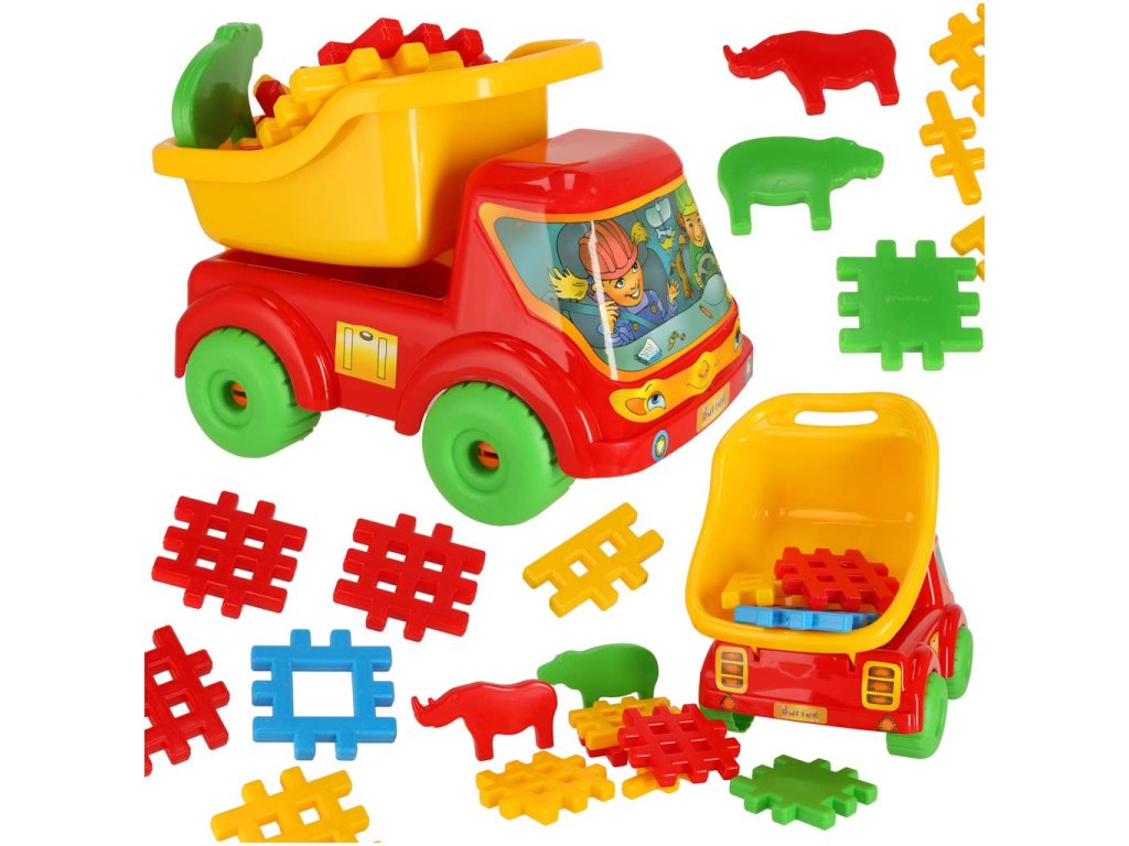 Sada barevných doplňků do písku. Kyblík se sítkem, hrabičky, lopatka a 3 formičky pomohou vytvořit krásné stavby z písku. A velká sklápěčka poskytne další zábavu a usnadní přepravu písku z jednoho místa na druhé. Materiál: plast.