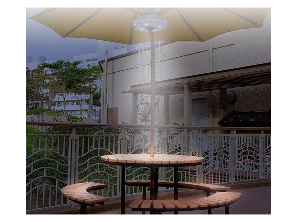Osvětlení pro dlouhé letní večery dokonale osvítí prostor pod slunečníkem.