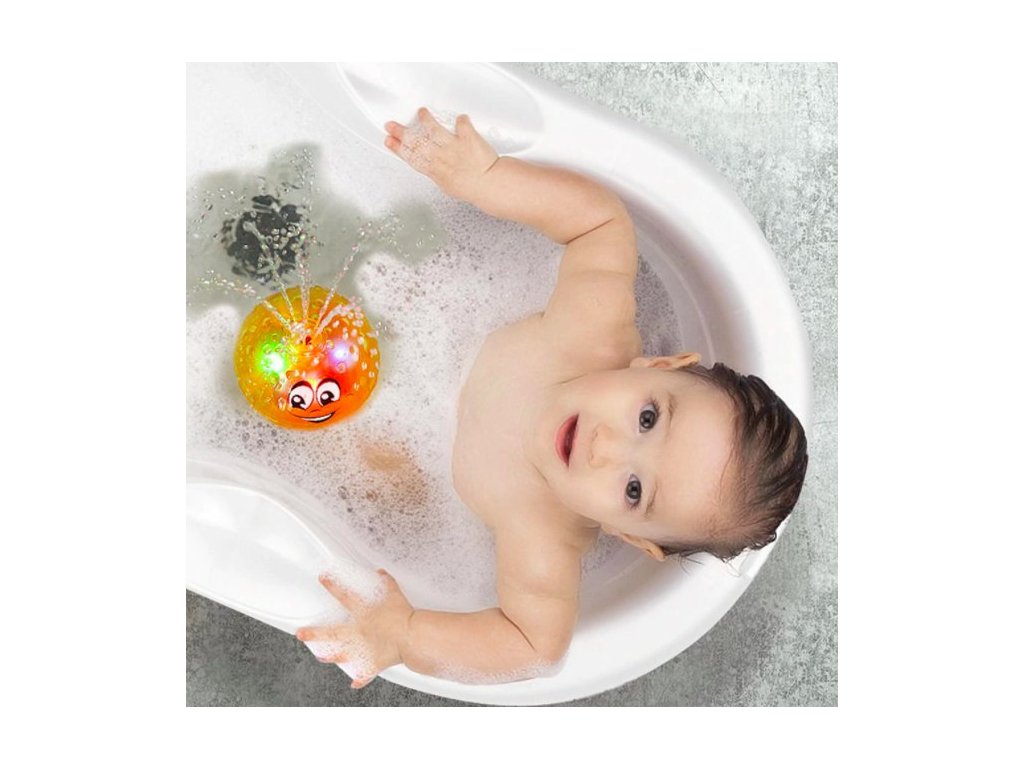 Položením hračky na vodní hladinu aktivujete světelné efekty, a hračka navíc začne stříkat vodu. Dítě zaujme nejen rozesmáty obličej hračky ale i celkový design hračky. S touto hračkou bude koupání jedna velká zábava a hračka stane nenahraditelným koupacím kamarádem. Dětem se určitě bude líbit i pěkný design hračky. Kulatá hračka ve žluté barvě s rozesmátým obličejem.