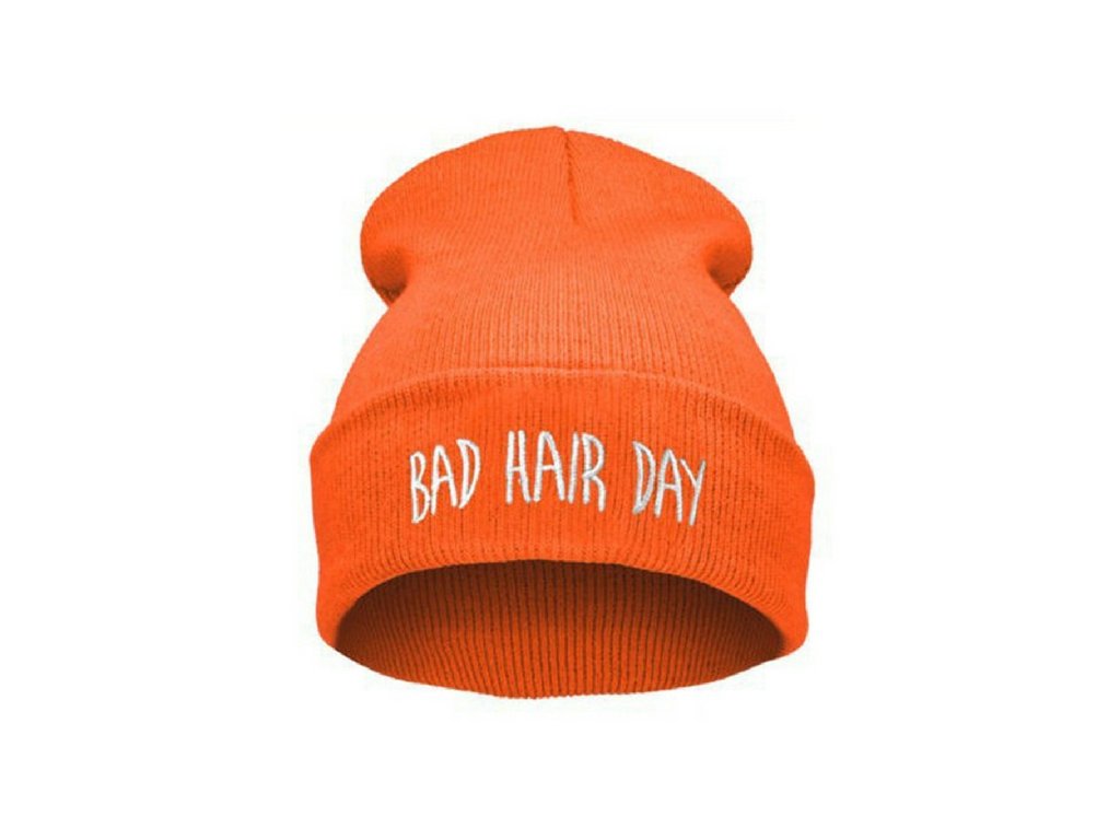 Zimní čepice BAD HAIR DAY - NEONOVÁ ORANŽOVÁ + BÍLÝ NÁPIS